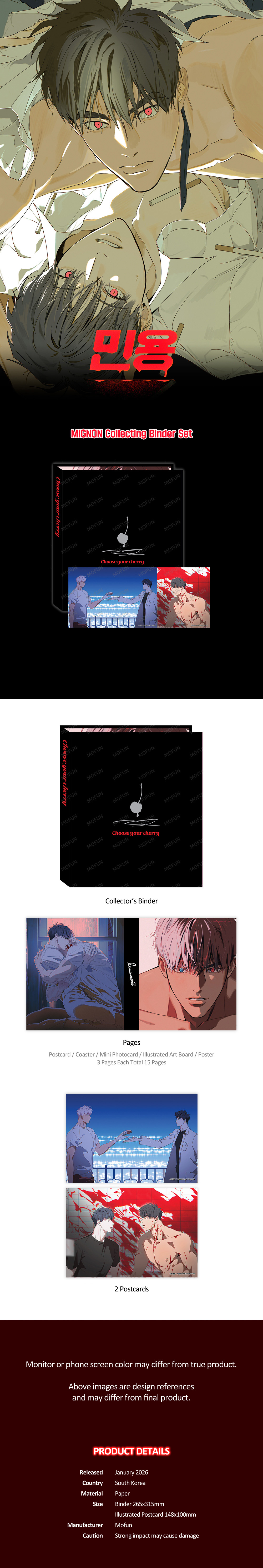 1 Binder, 15 Pocket Pages, 2 Postcards