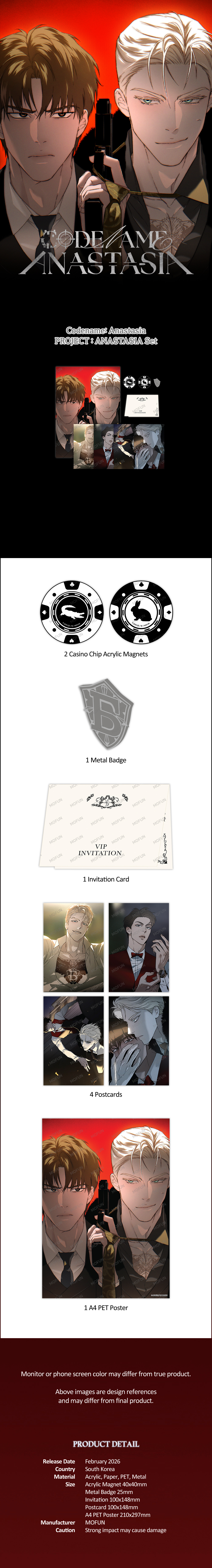 2 Casino Chip Acrylic Magnets, 1 Metal Badge, 1 Invitation Card, 4 Postcards, 1 A4 PET Poster
