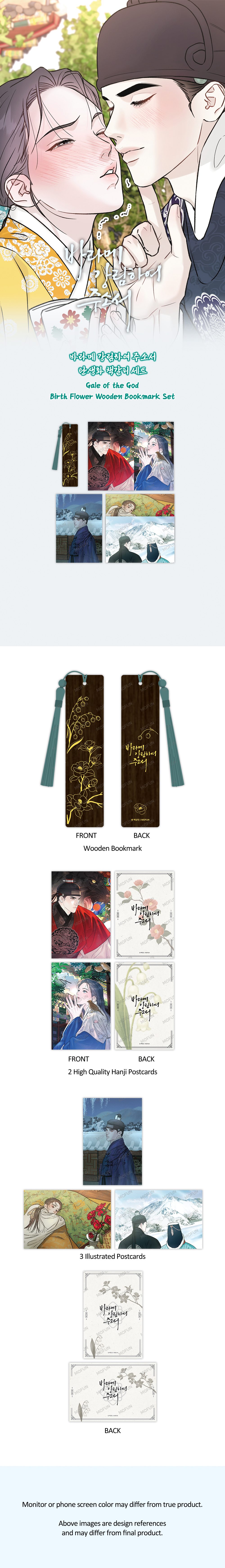 1 Wooden Bookmark, 2 Hanji Postcards, 3 Illustrated Postcards