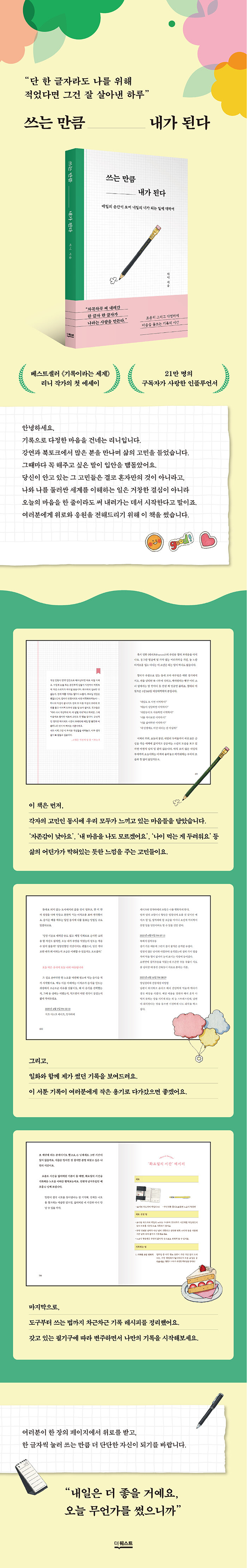 단 한 글자라도 나를 위해 적었다면 그건 잘 살아낸 하루라고 말하는 책이다.