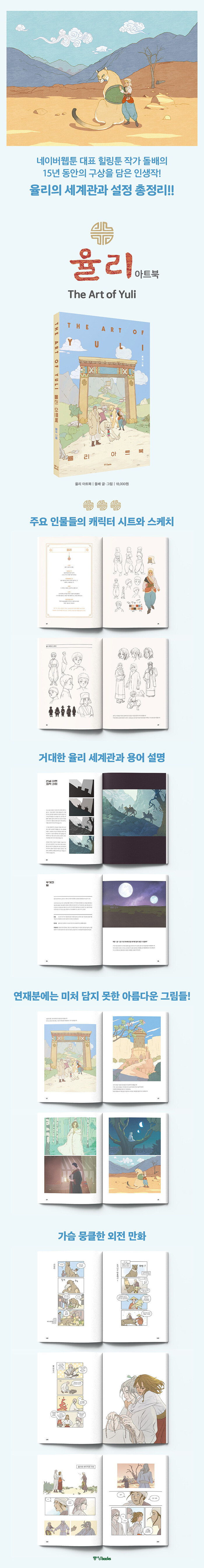 신비로운 세계관과 따뜻한 색감, 환상적인 스토리로 팬들을 사로잡은 네이버웹툰 인기작 <율리>의 모든것을 담은 〈율리 아트북〉이 출간되었다. 웹툰 <율리>는 중세 중앙아시아를 배경으로 그야말로 방대한 세계관을 자랑하는 작품이며, 연재 지면(?)의 제약으로 충분히 선보이지 못한 다양한 설정과 뒷이야기가 존재한다.