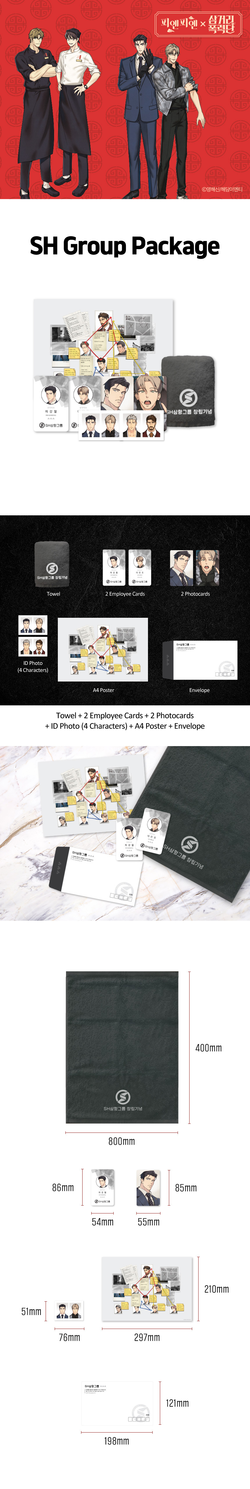 1 Towel, 2 Employee Cards, 2 Photocards, ID Photos, A4 Poster, Envelope